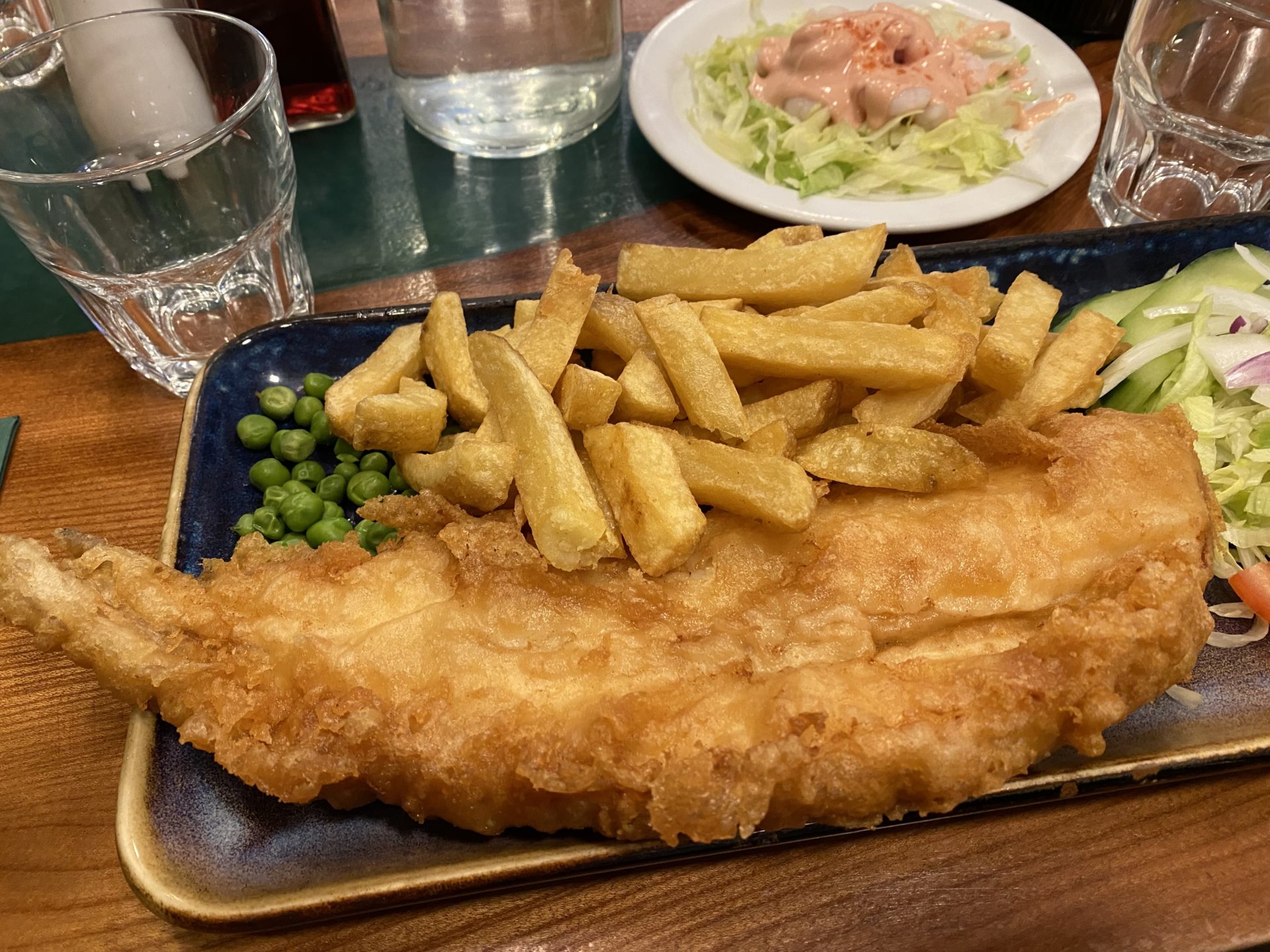 イギリスのロンドンに行った際、フィッシュ&チップスを「せっかく来たのだから一度は食べておけ」と言わんばかりに出してくれる料理がある。確か2日目の昼食であった。バッキンガム宮殿に行った後、場所は正確には覚えていないが、ユーロスターのロンドン終点駅の近くだったような記憶がある。