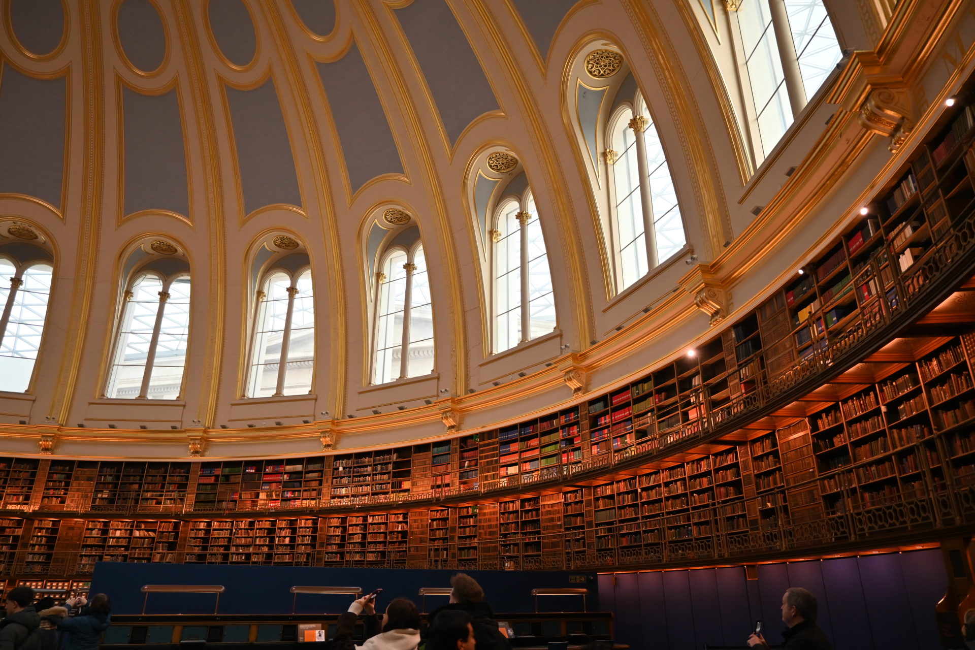 館内に入った瞬間、まず目に飛び込んでくるのは、ホールの圧倒的な大きさと、石材の壁と床がつくり出す白い世界である。この場所はグレートコートと呼ばれる。ホール中央には円柱構造の図書館が佇んでおり、比較的小さな入口から中へ入ることができる。